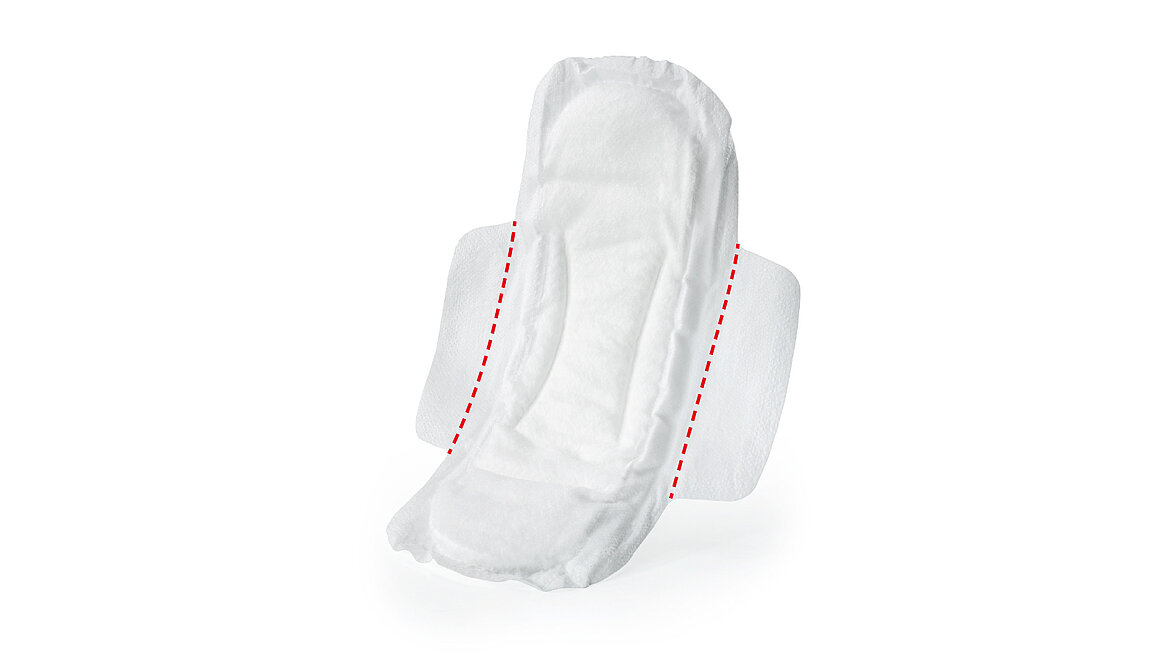 - 生理用ナプキン (羽の取り付け / 端部 / トップシートおよび吸収分散層)