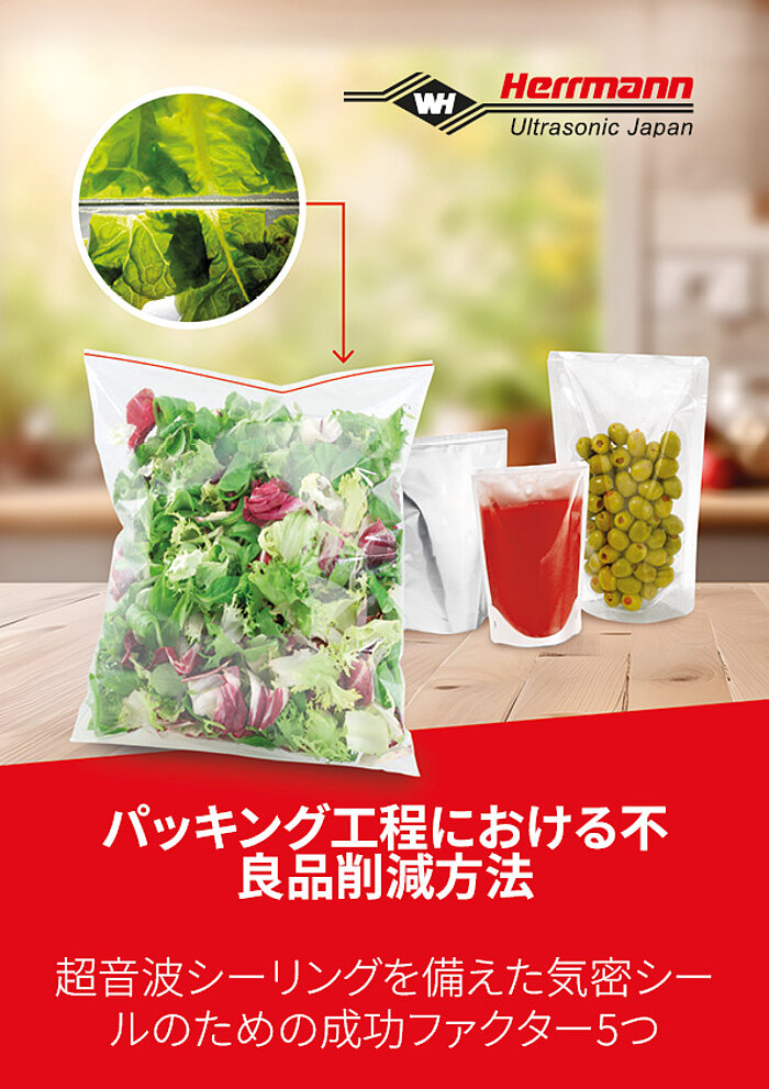 超音波はシーリング部分を確実に密封して汚染の混入を防止し、従来の技術と比較してシール幅を大幅に狭くすることができます。これにより、1パッケージあたり5~10 mm節約できるため、包装サイズの縮小、材料の消費量やコストの削減が期待できます。